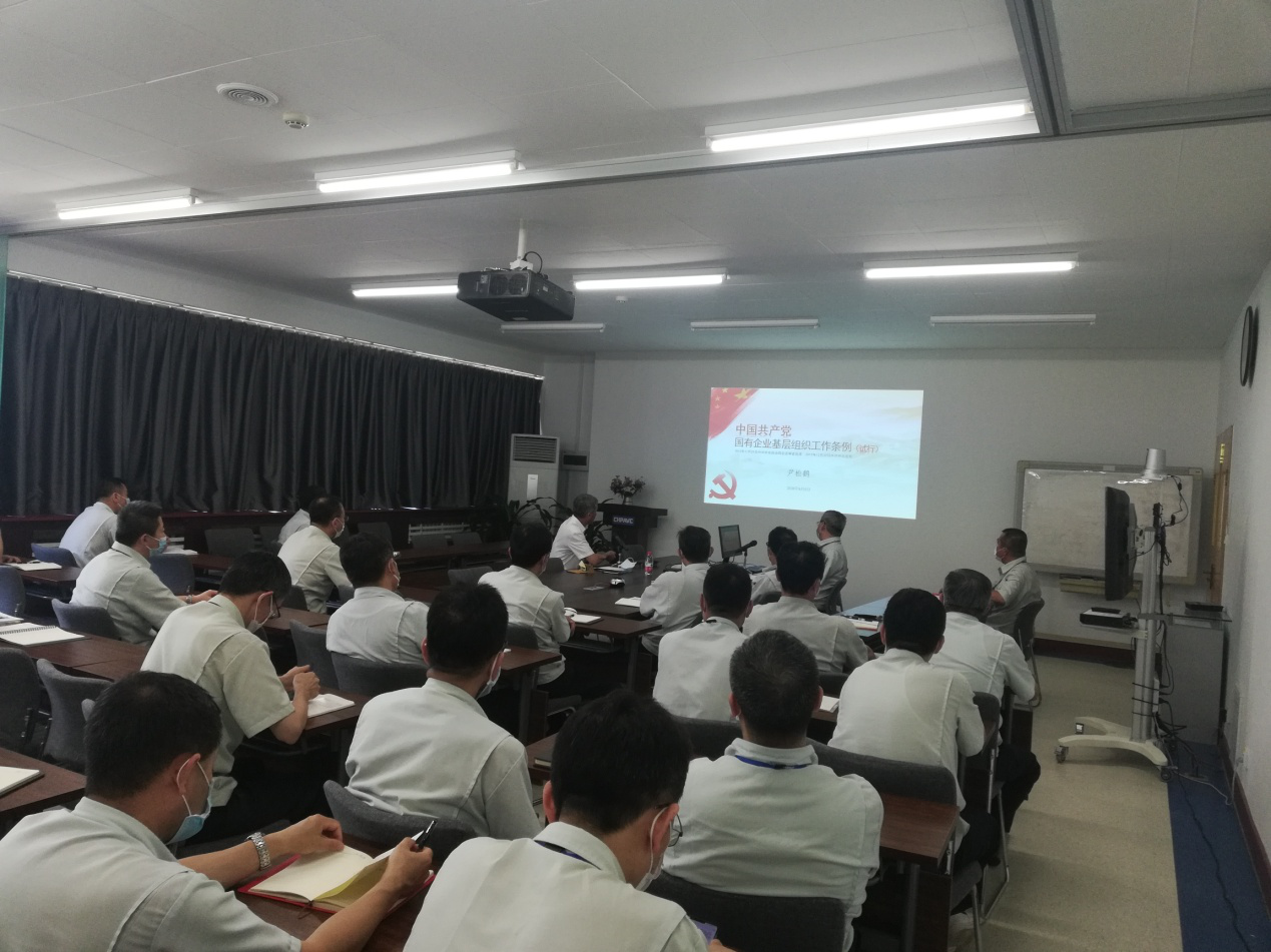 尹書記在黨課中詳細(xì)講解了《條例》的出臺背景及意義,概述了《條例》的主要內(nèi)容和特點,并深入淺出的對國有企業(yè)基層的組織建設(shè)、主要職責(zé)、黨員隊伍建設(shè)等進(jìn)行了逐條解讀。