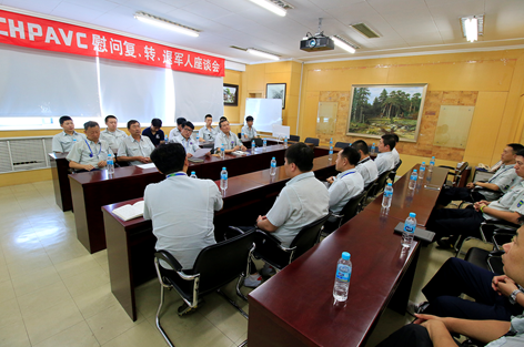 8月1日華松公司組織召開座談會,公司20余名退伍、復(fù)員、轉(zhuǎn)業(yè)軍人代表出席參加了會議。華松公司黨委書記、工會主席朱玉生同志在座談會上向公司所有復(fù)員、轉(zhuǎn)業(yè)、退伍軍人致以節(jié)日的問候。華松公司黨委委員、副總經(jīng)理尹松鶴同志也出席了座談會,他同與會復(fù)、轉(zhuǎn)、退軍人代表進(jìn)行了熱情廣泛交流,聽取了代表們的當(dāng)兵經(jīng)歷和工作中的感想。