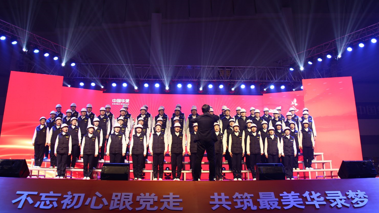 匯演在現(xiàn)場所有人員高唱《歌唱祖國》中落下來帷幕,集團領導和全體演職人員共同登臺,揮手告別這場激動人心的盛會。
