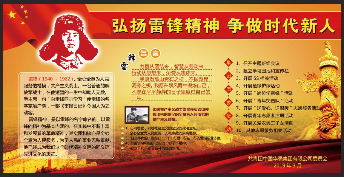 2019年是中華人民共和國(guó)成立70 周年、五四運(yùn)動(dòng)100 周年,為把學(xué)習(xí)宣傳貫徹習(xí)近平新時(shí)代中國(guó)特色社會(huì)主義思想和黨的十九大、團(tuán)的十八大精神持續(xù)引向深入,激勵(lì)和引領(lǐng)廣大團(tuán)員青年推進(jìn)學(xué)雷鋒志愿服務(wù)常態(tài)化,進(jìn)一步在全社會(huì)營(yíng)造向上向善、互幫互助的良好風(fēng)尚,華錄集團(tuán)團(tuán)委3月份在全集團(tuán)廣泛開(kāi)展學(xué)雷鋒志愿服務(wù)活動(dòng)。