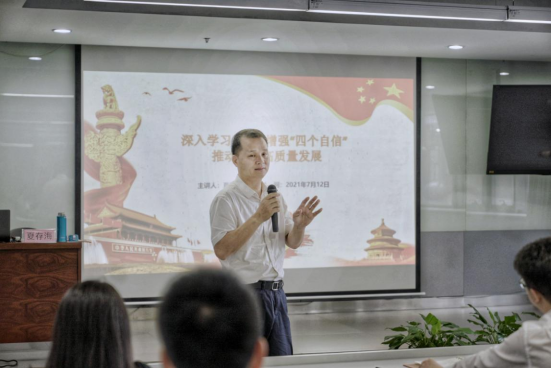 夏存海以《深入學(xué)習(xí)黨史 增強“四個自信” 推動企業(yè)高質(zhì)量發(fā)展》為主題,用通俗易懂的語言、詳實具體的歷史事件回顧了中國共產(chǎn)黨波瀾壯闊的百年歷史,對“為什么要堅定中國特色社會主義道路自信、理論自信、制度自信、文化自信”進行了深入透徹的剖析和解讀。