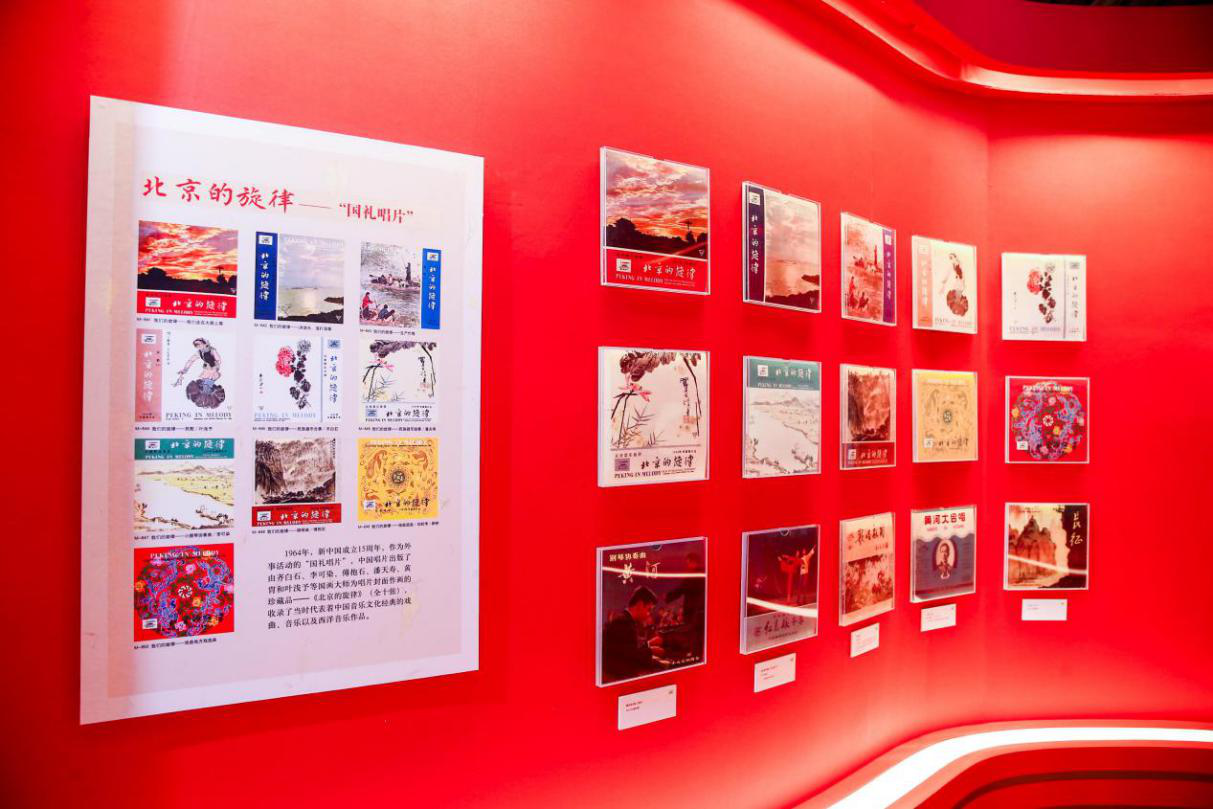 “北京的旋律”系列展覽共分為三個板塊:“唱片里的時代記憶”多媒體唱片墻及唱片實物展示區(qū)、“信仰之聲”百年經典音樂音視頻展區(qū)、“唱支山歌給黨聽”多媒體試聽互動打卡區(qū)。